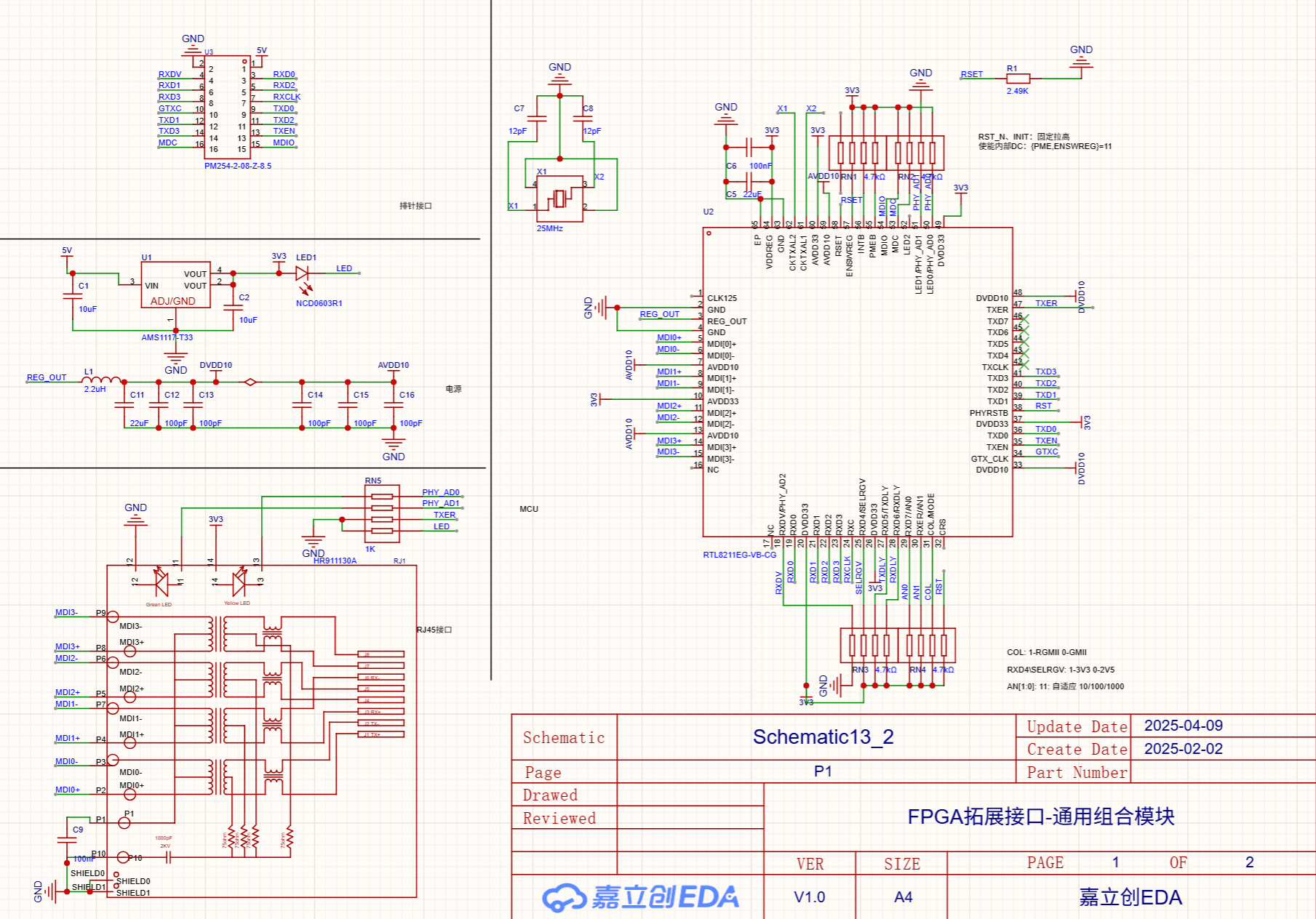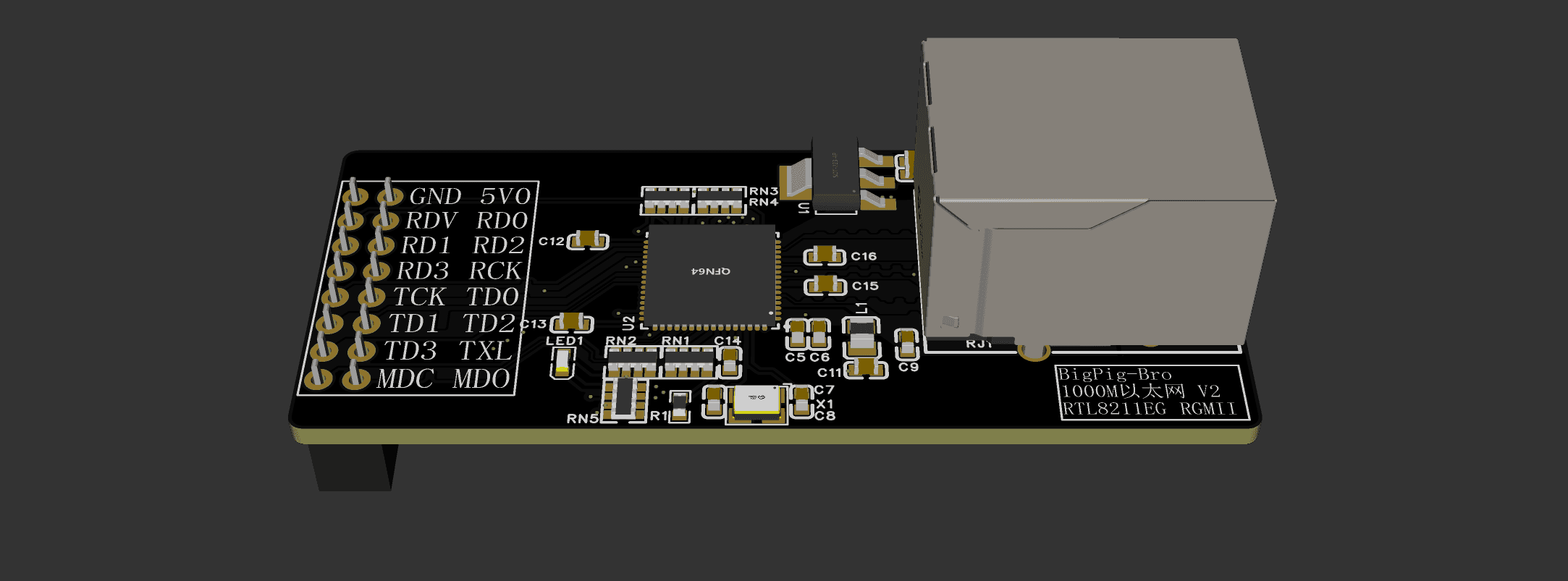 本模块为基于RTL8211EG芯片设计的10/100/1000M以太网通信模块,为方便FPGA时序,此处配置为RGMII并口双边沿传输模式,方便原来使用EG芯片的替换测试
